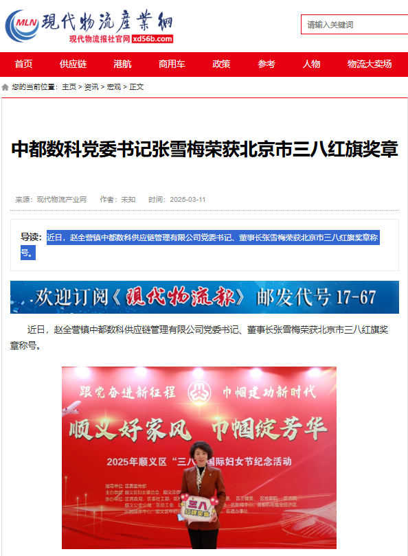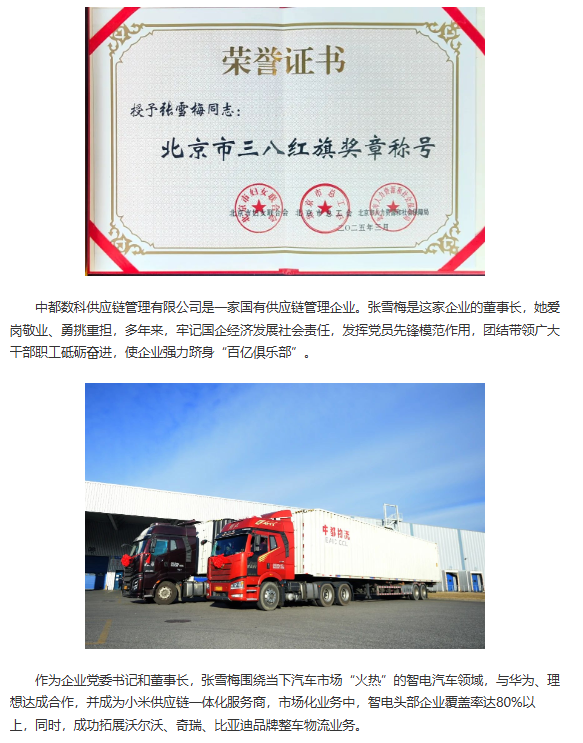 中都數(shù)科黨委書(shū)記張雪梅榮獲北京市三八紅旗獎(jiǎng)?wù)?